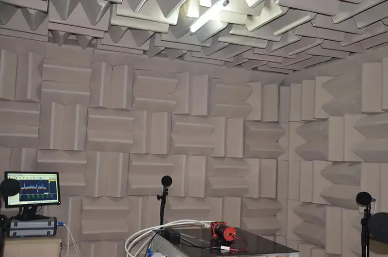 According to Peili test personnel, the noise laboratory—also known as a semi-anechoic chamber—primarily provides a semi-free acoustic field space for acoustic testing. It is chiefly used for noise testing and spectral analysis of products such as water dispensers and water purifiers, along with their components, during operational conditions. This ensures product noise metrics comply with design specifications.