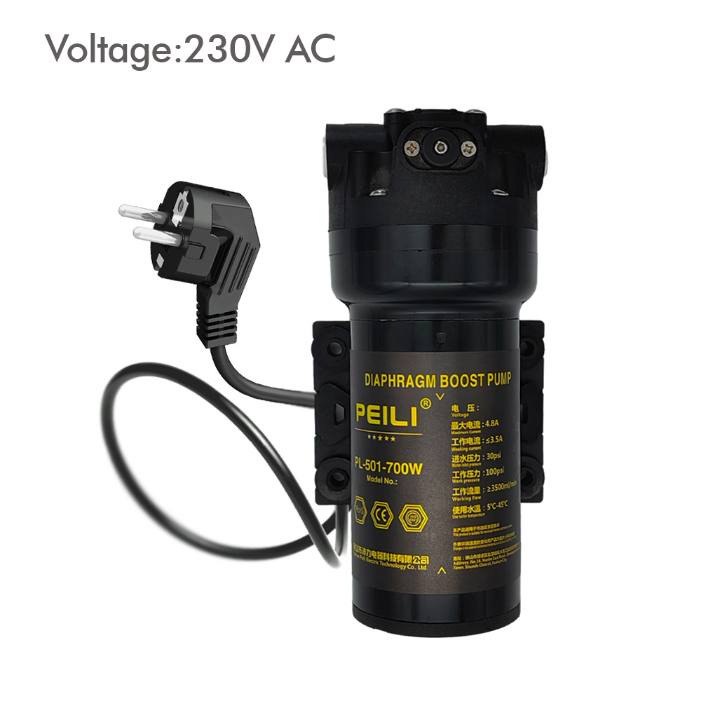 The PL-501-700W is a premium 230V AC water purifier pump designed for optimal performance in a variety of water purification systems. Built with high-quality components, this pump features high-pressure capabilities that ensure efficient water filtration. Its diaphragm mechanism provides reliable operation, making it an essential part for any water purification setup. Experience improved water quality and enhanced filtration efficiency with this durable and reliable membrane pressure pump.